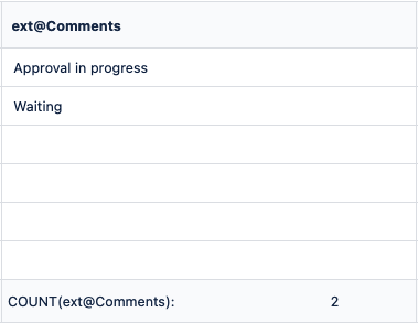 String | COUNT(ext@Approval\ State, ext@Cost is not null) | Counts the requirements with an "Approval State" external property, and a Cost external property |