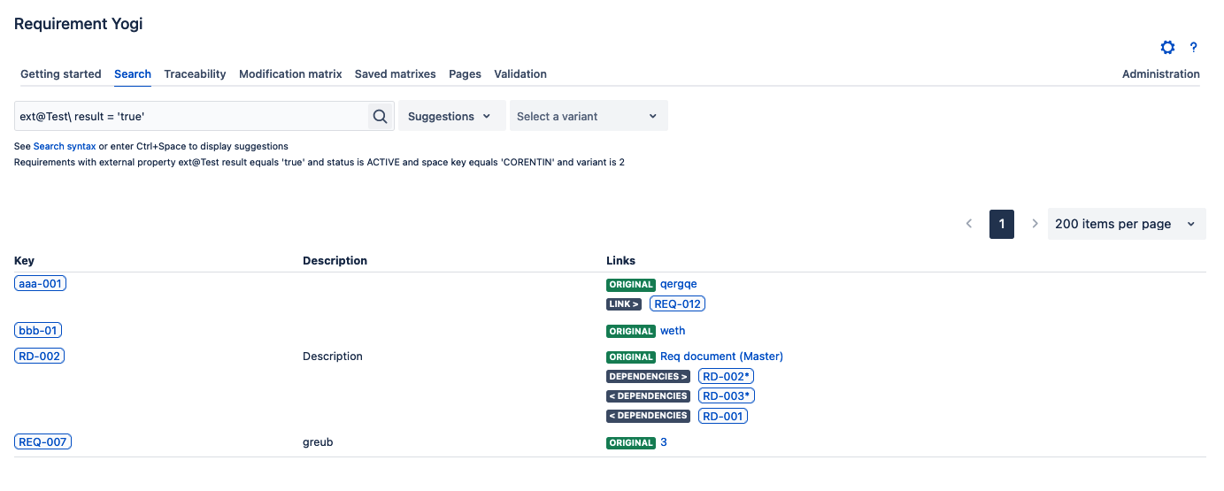 In the requirements details, you can also search for requirements with the same values by clicking the "link" icon, and the search query will be constructed for you.