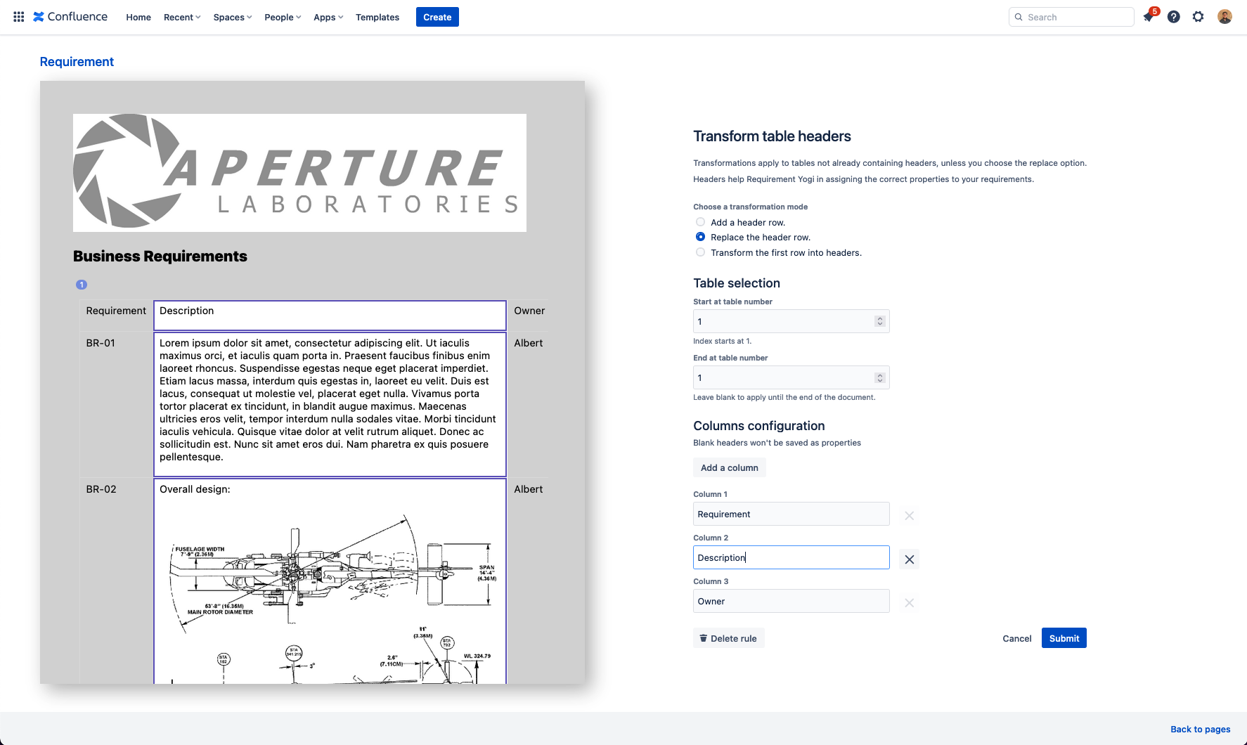 We will replace the first row of your tables. You can use this transformation to quickly rename properties for several tables of requirements at once. Tables already having headers will also have their headers replaced. We will remove the first row of tables not having headers.