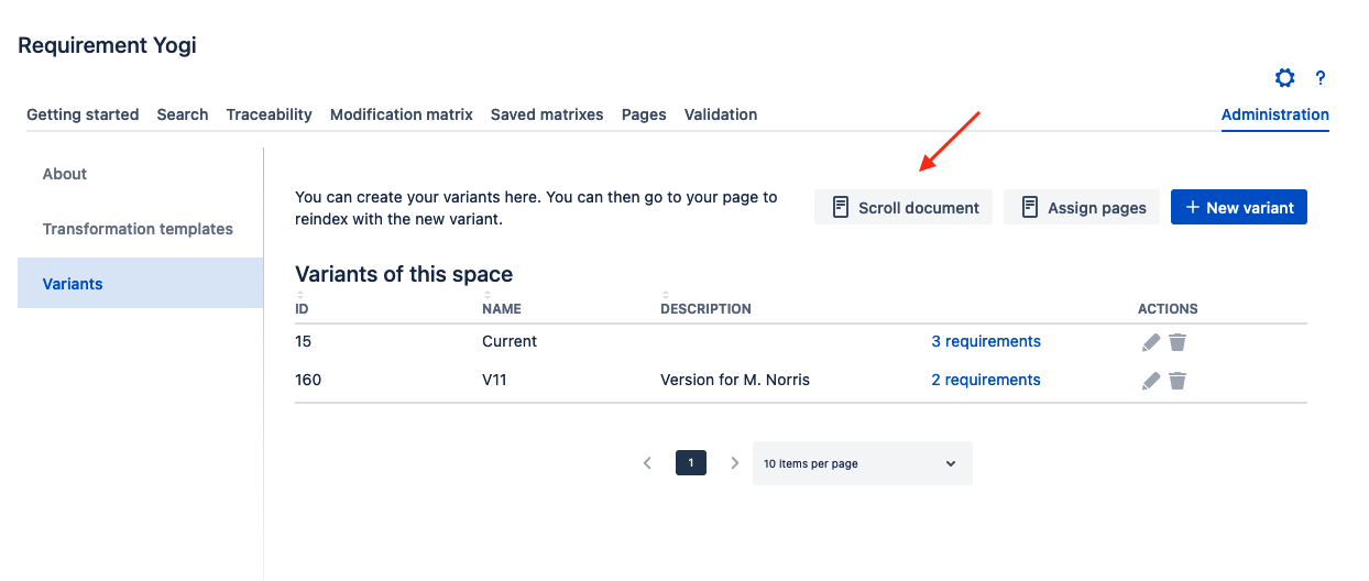 Our Requirement Yogi plug-in provides an integration with Scroll Documents, allowing you to import all documents and versions managed by Scroll as variants.