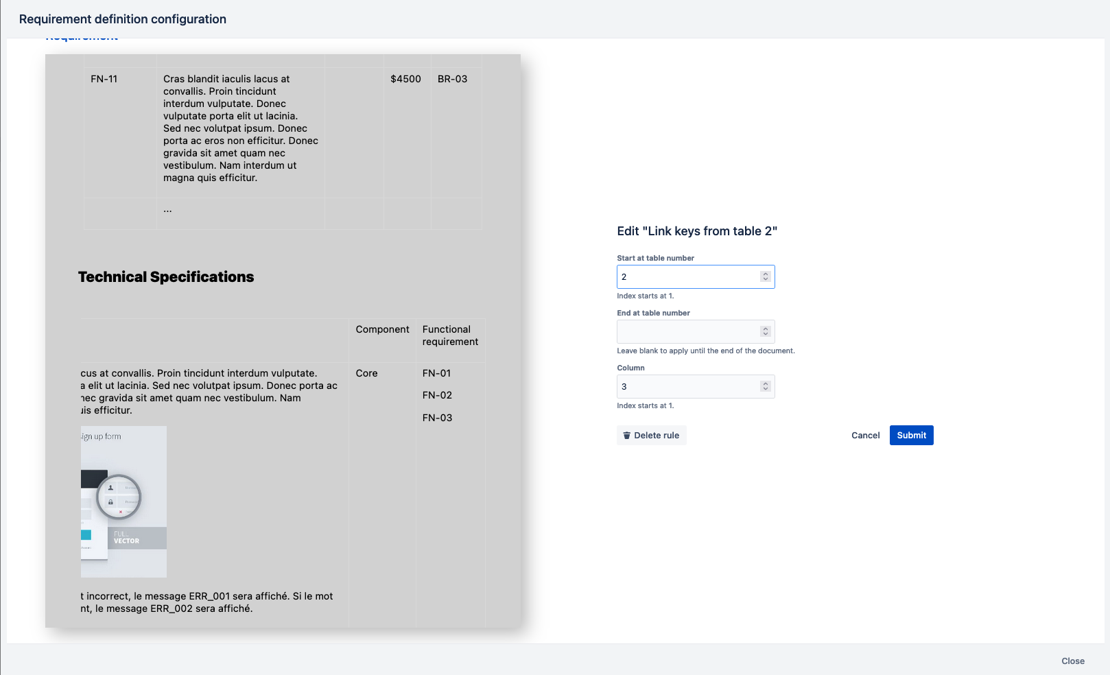 As part of the default steps when creating a new transformation, you will be asked to identify the potential links to requirements.