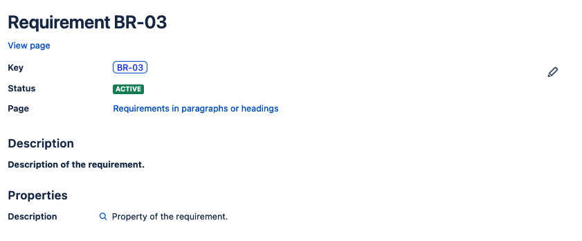 When you define requirements in paragraph or headings, by default, the description of the requirement is the following text. Requirement keys in paragraphs: | ![]() |