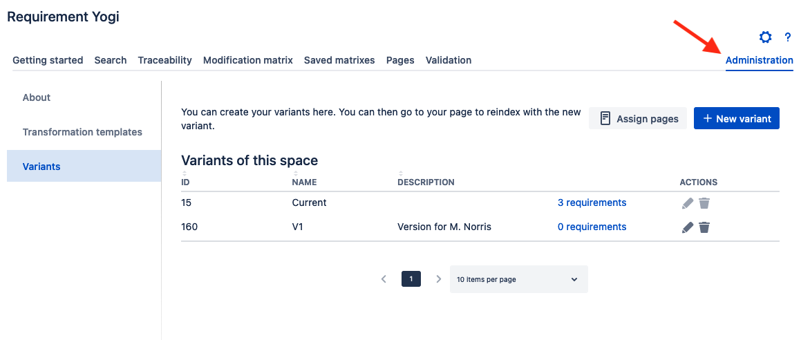 By default, each space has a Current variant. All new requirements are assigned to this variant.