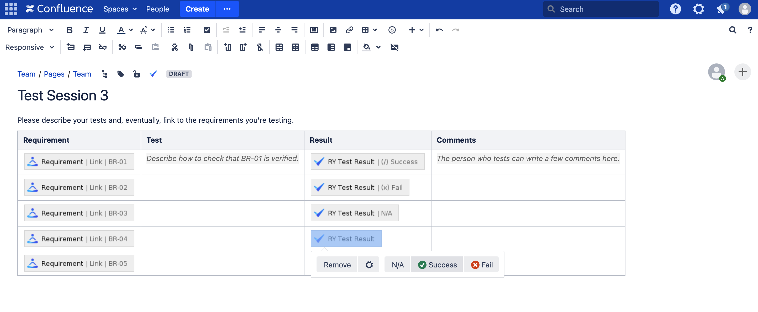 This blueprint lets you test requirements. That is, for each requirement, have a success/fail toggle.