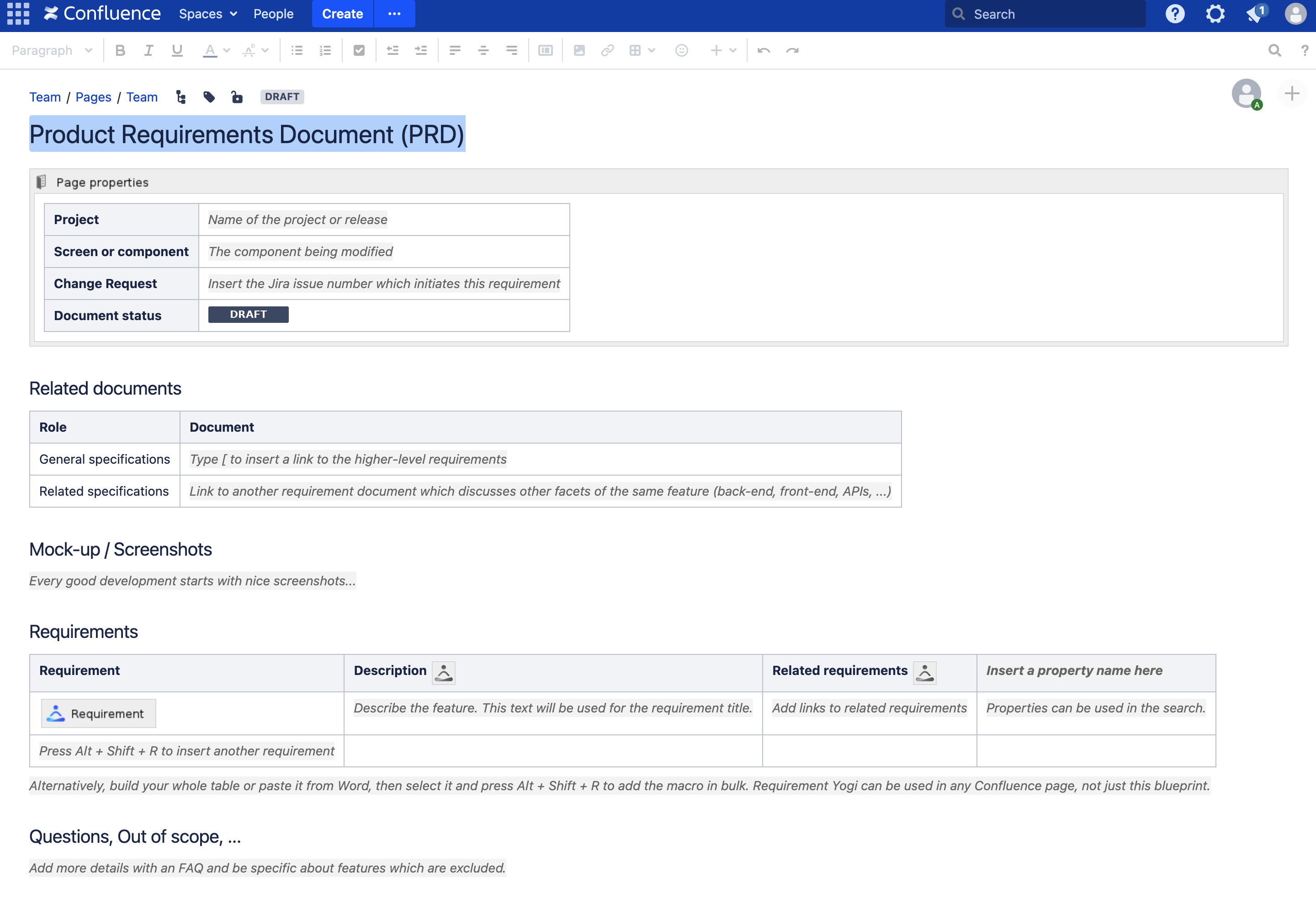 The gray icons in the table headers on this blueprint specify that the "Description" column is the only text that is extracted for the requirement, and the "Related Requirements" should be displayed under the "related" property in the requirement.
