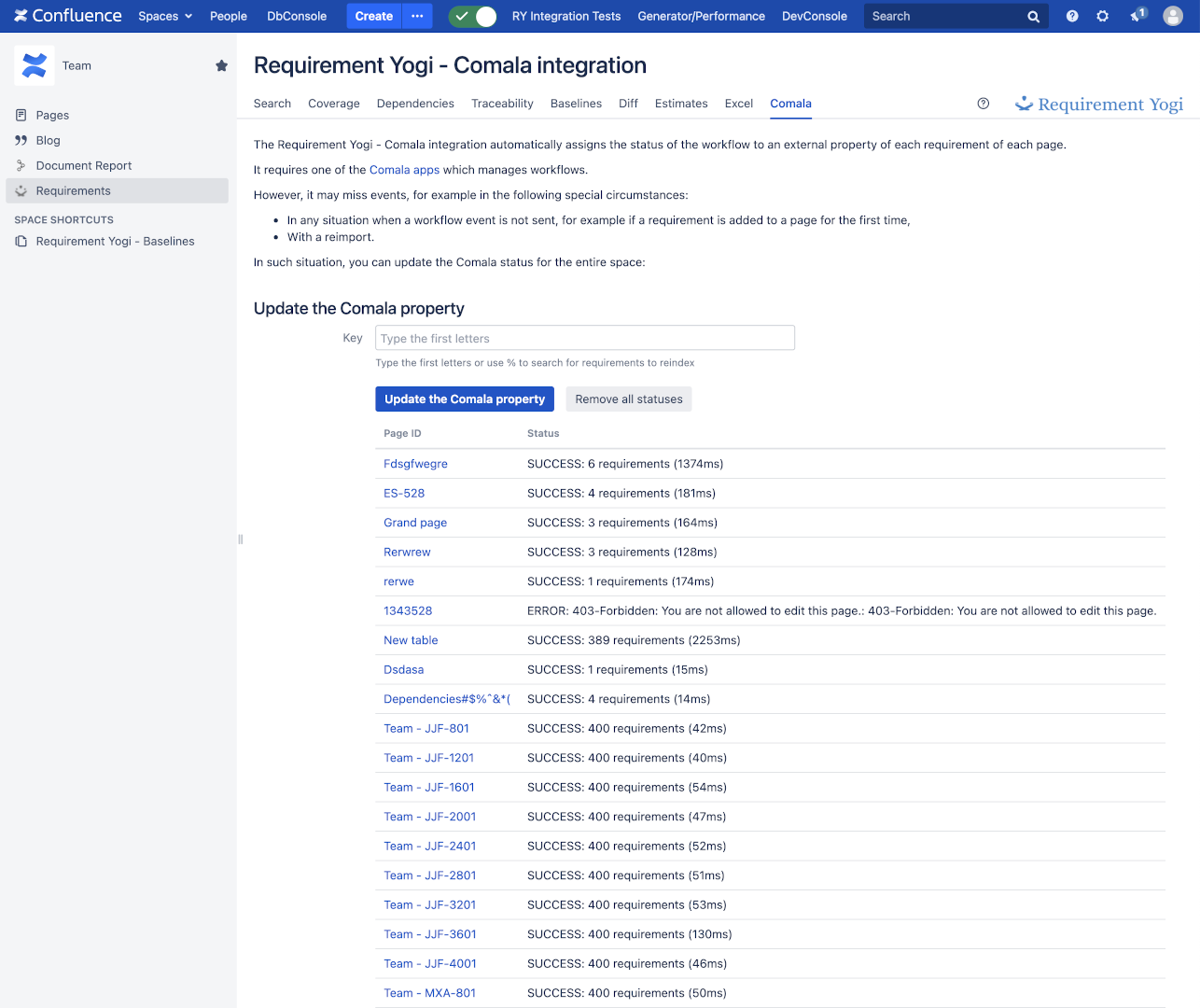 It requires to have Comala Document Management (tested with version 6.16.13) and Requirement Yogi