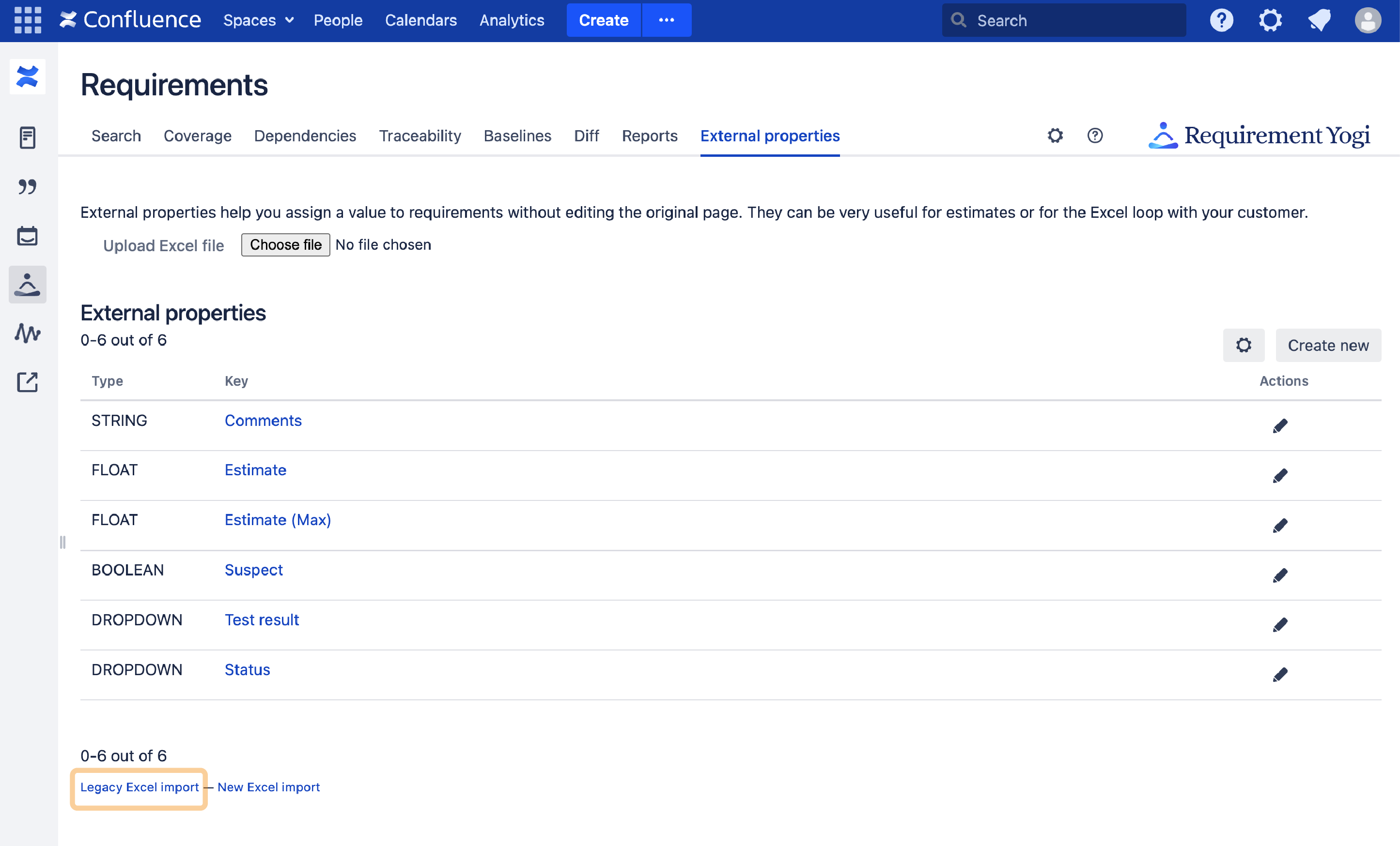 Since this version, we’ve replace the Excel tab with External Properties. The Excel import is mostly needed to export requirements from Confluence, send them to your stakeholders for validation, and then import them back in Confluence with added comments. We were not able to do that, Excel requirements were only visible and not editable. You can still import requirements from Excel, here’s how: