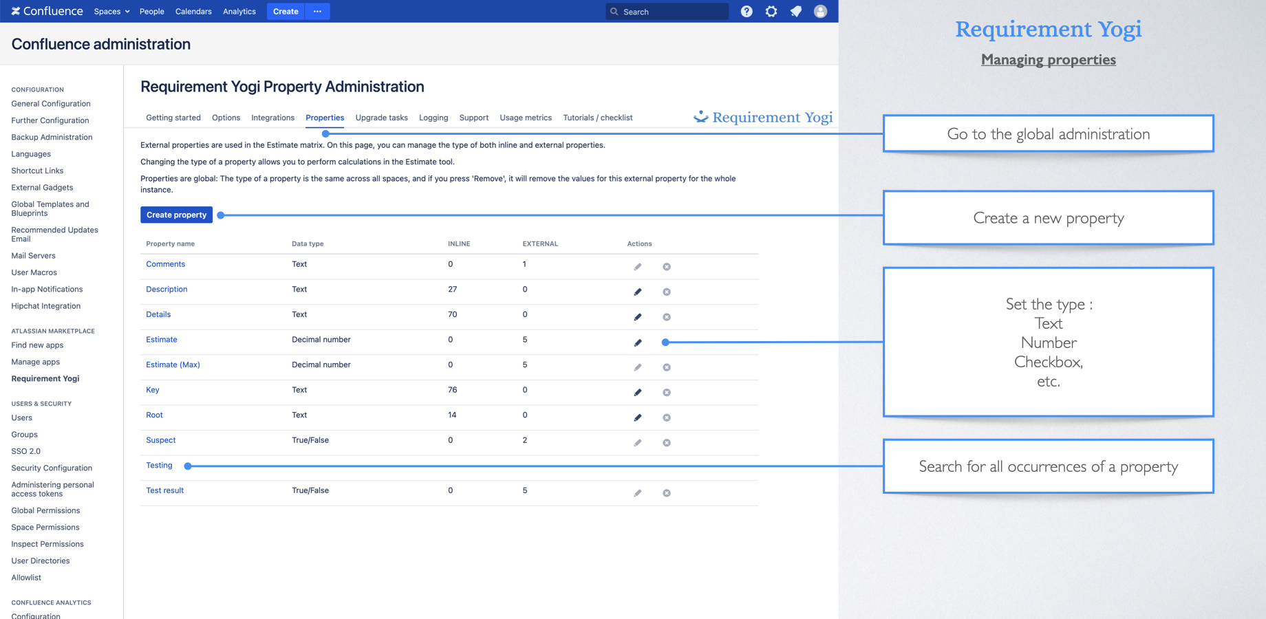 As opposed to inline properties, external properties are not visible in the original page, so you can edit them without disturbing the author of the requirements,