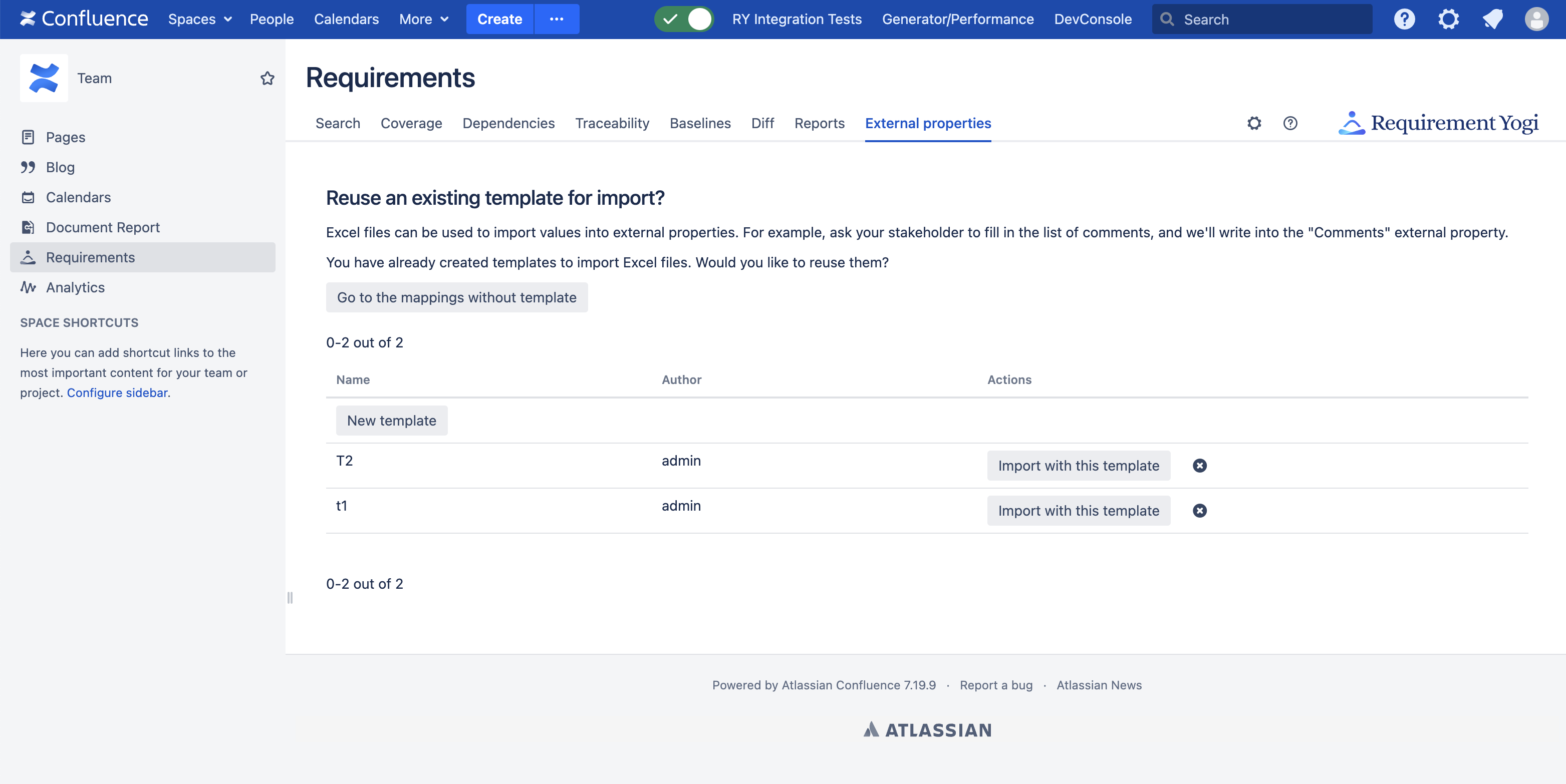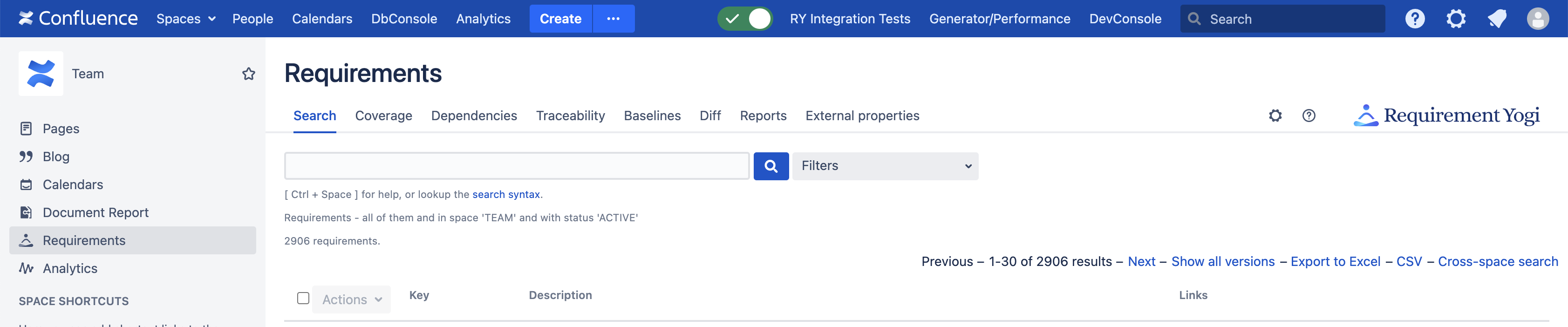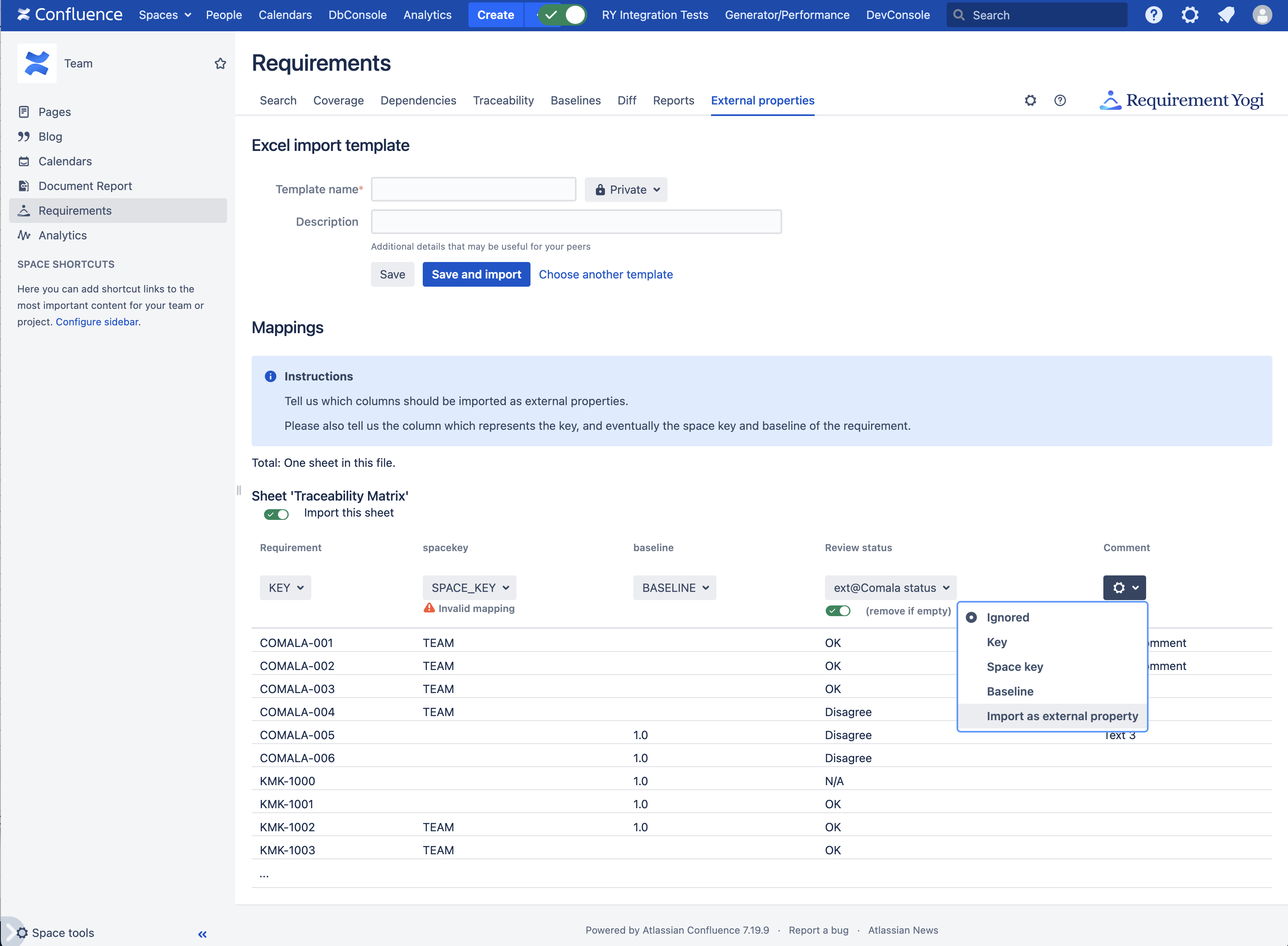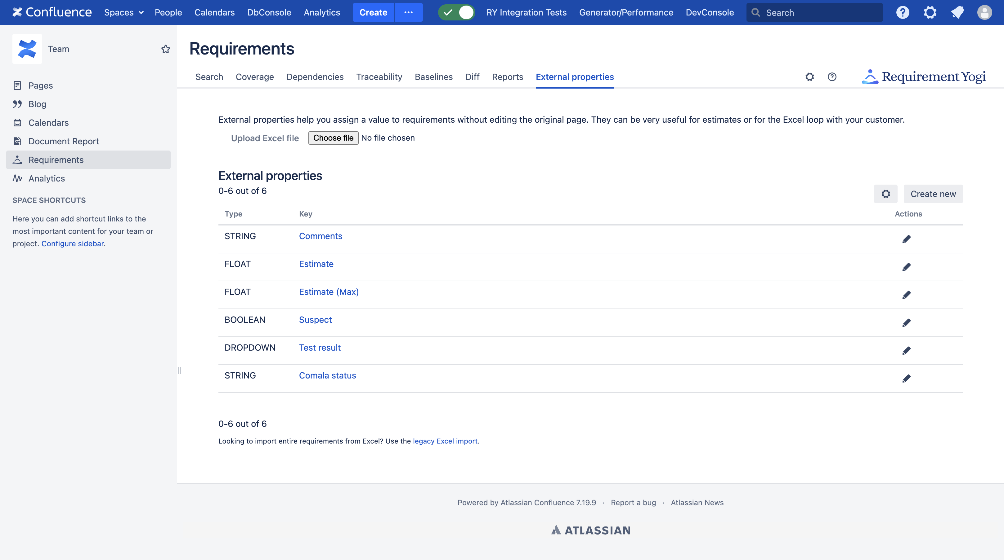 The “Excel” import wasn’t used by most companies, since it had two flaws. First, customers expected to edit requirements after they were imported, they were asking “Is there a Confluence page that I can edit, with those requirements?”. We ended up recommending customers to copy-paste their requirements into Confluence. Second, customers expected to edit existing requirements with this import, so we’ve implemented this in the new “External properties” tab. If you still need the Excel import, please tell us, and it is available in the footnotes of the “External properties” tab.