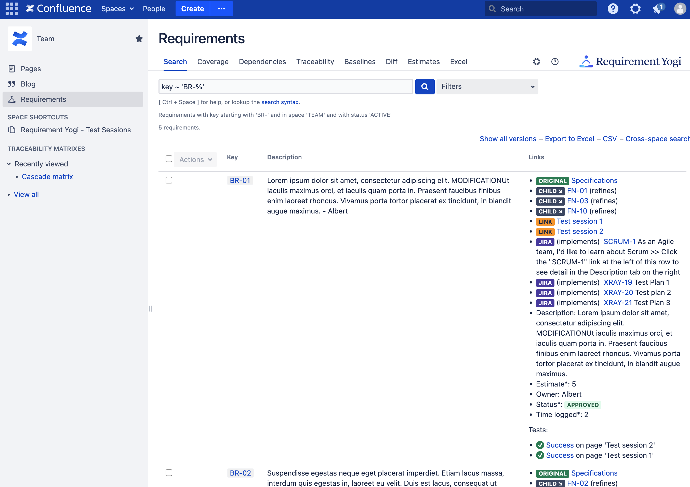 This page describes the search syntax to find requirements in Confluence. Requirement Yogi provides a search screen in every space.