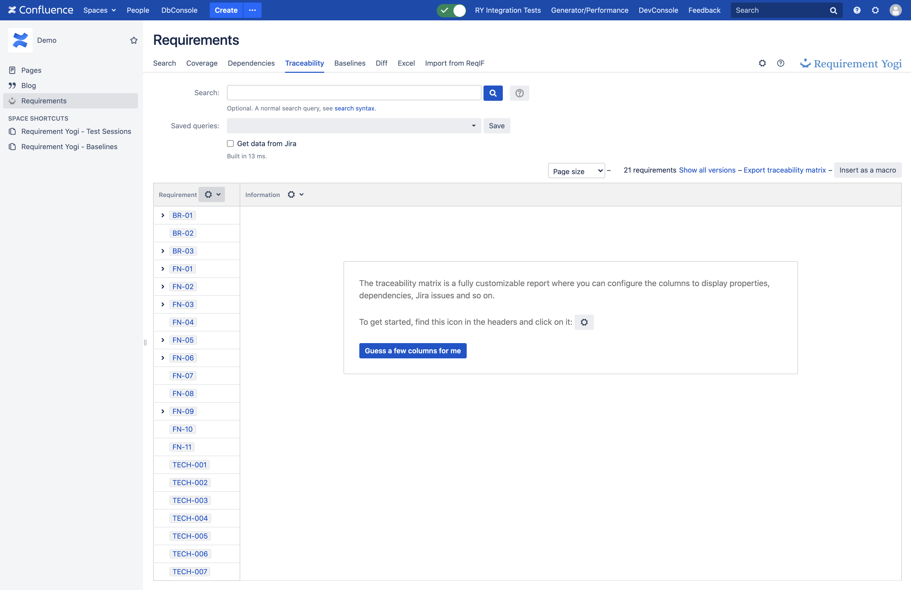 The traceability matrix is the most powerful screen of Requirement Yogi.